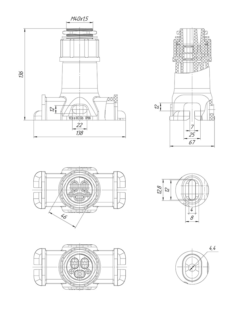 1Ex e IIC Gb Х 2Ex nR IIС Gc X | Ex tb IIIC Db Ex tb IIIC Db X | IP66/IP67 | -60°С…+135°С |