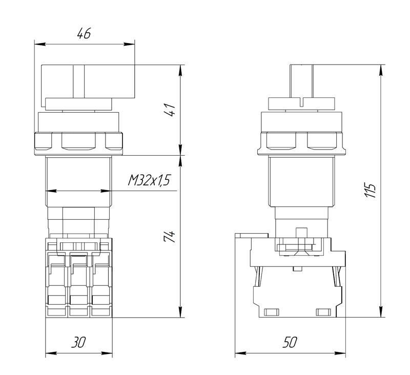 Кнопки конструктивно представляют собой сборку из контактного блока и кнопочного элемента. Контактный блок имеет корпус из полиамида и смонтированные внутри подпружиненные нажимные элементы и клеммные зажимы. Кнопочный элемент представляет собой подпружиненный нажимной элемент, смонтированный в корпусе из полиамида. Материал уплотнительных колец – силикон. Конструктивно нажимная головка кнопки может быть выполнена в различных исполнениях. Контактный блок имеет различные электрические схемы.
