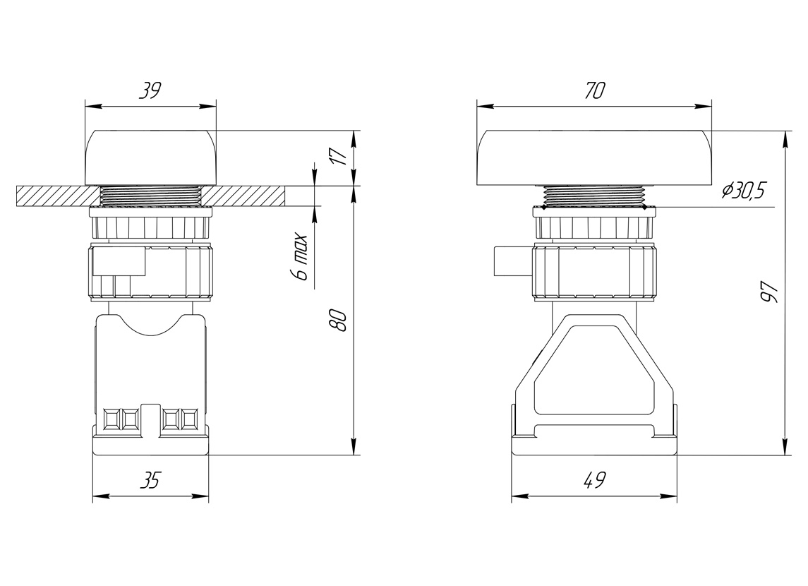 Кнопки конструктивно представляют собой сборку из контактного блока и кнопочного элемента. Контактный блок имеет корпус из полиамида и смонтированные внутри подпружиненные нажимные элементы и клеммные зажимы. Кнопочный элемент представляет собой подпружиненный нажимной элемент, смонтированный в корпусе из полиамида. Материал уплотнительных колец – силикон. Конструктивно нажимная головка кнопки может быть выполнена в различных исполнениях. Контактный блок имеет различные электрические схемы.
