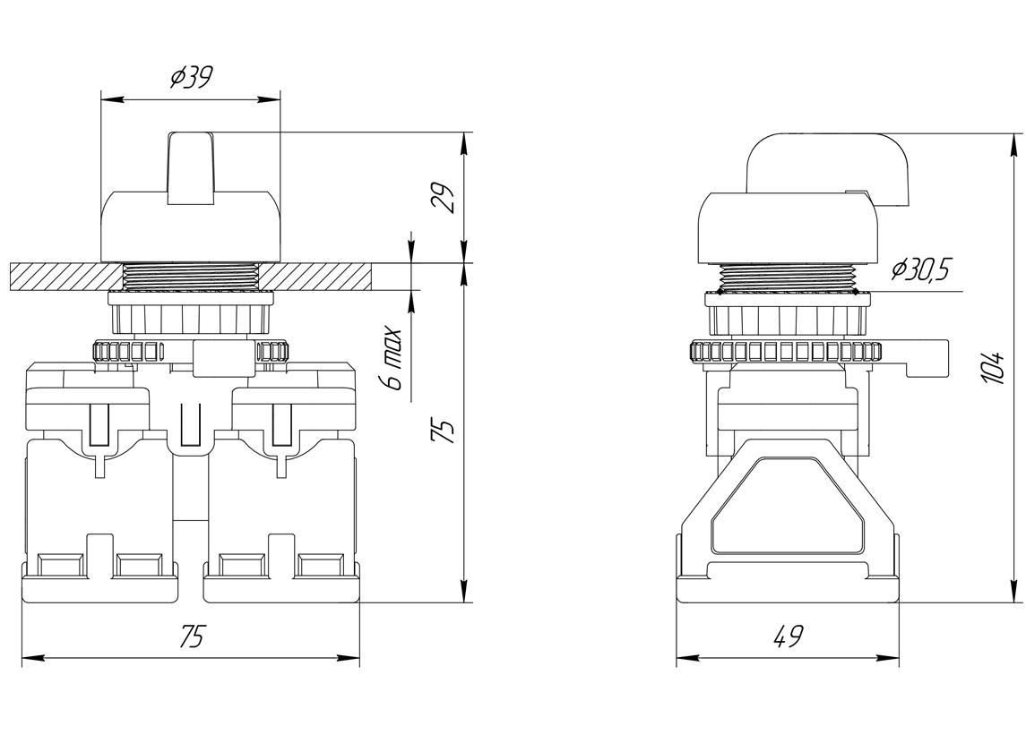 | ВЕ-ПЛ-A06-11 | Переключатель, два фиксированных положения (I-II) | 1НО+1НЗ | ||