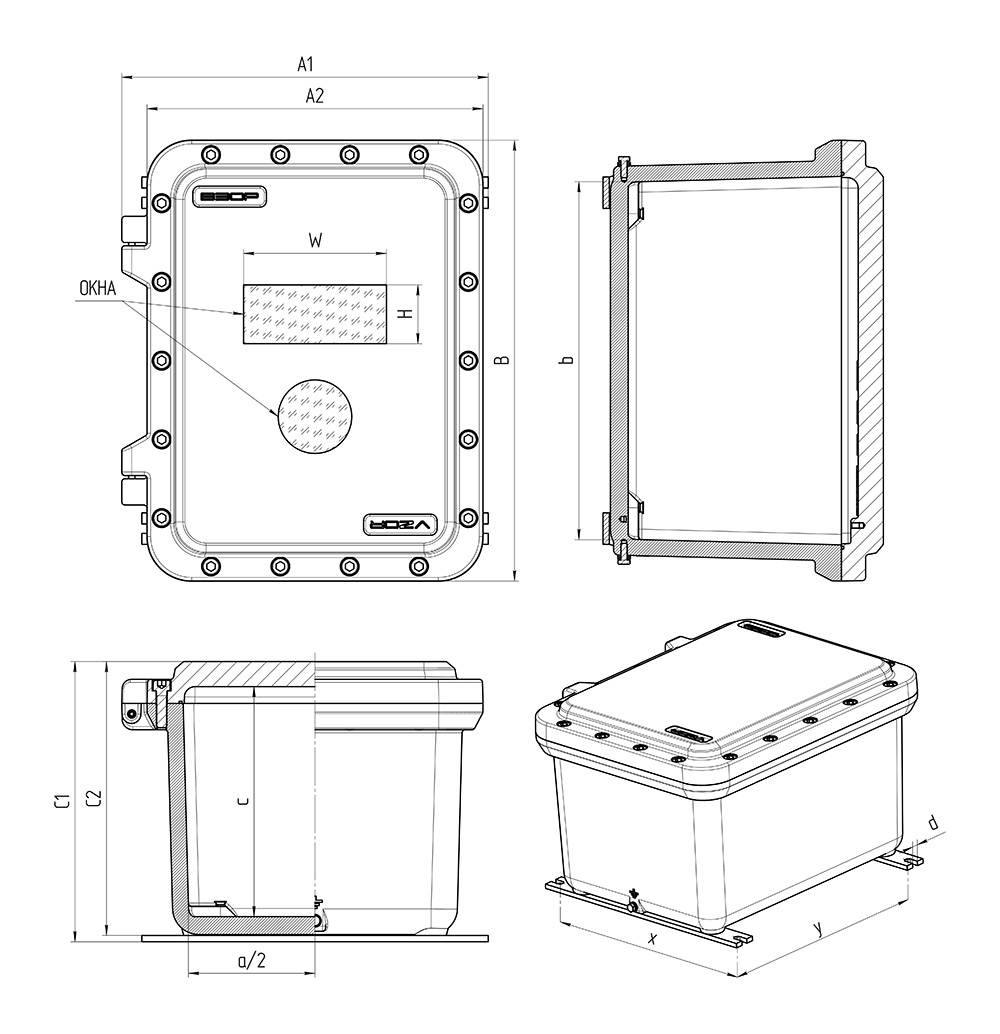 Взрывонепроницаемая оболочки ВО с окном с видом защиты "d", "t" из алюминиевого сплава, с наружным порошковым антикоррозийным покрытием