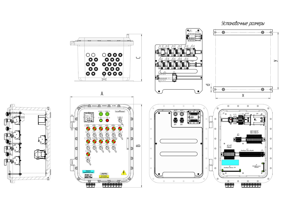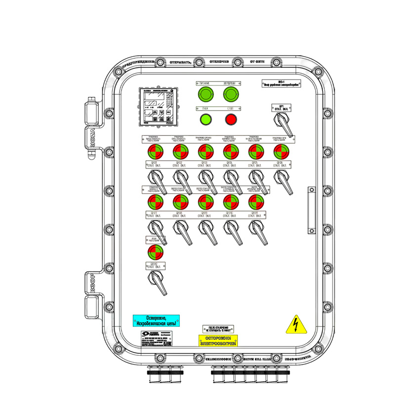 - Взрывонепроницаемый шкаф управления, коммутации и автоматизации ЩД с видом взрывозащиты “d”, “t” по схеме заказчика, на базе оболочек ВО из алюминиевого сплава